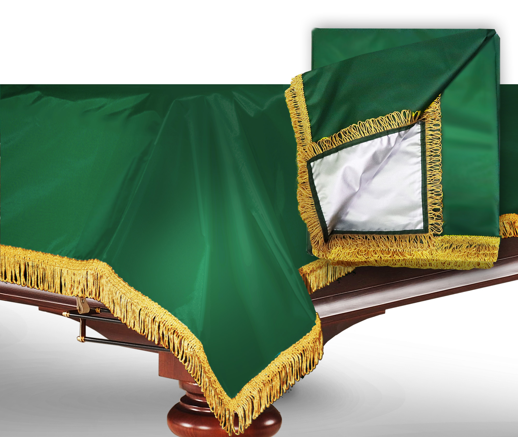 Чехол с влагостойкой пропиткой, обрамленный бахромой, надежно предохраняет бильярдный стол от внешних воздействий.. Стильный декор, практичный материал украшенный золотистой бахромой - замечательно впишется в интерьер бильярдной комнаты, ресторана или клуба. Пропитка придает ткани водоотталкивающие свойства, делает ее более плотной и гладкой. Чехол выкроен с таким расчетом, чтобы спускающаяся с поверхности стола ткань надежно закрывала и борта, и лузы, и часть опоры. Предназначен для защиты сукна и стола от неблагоприятных внешних воздействий. В первую очередь, от пыли, которая со временем впитывается в сукно, ухудшая его игровые свойства.