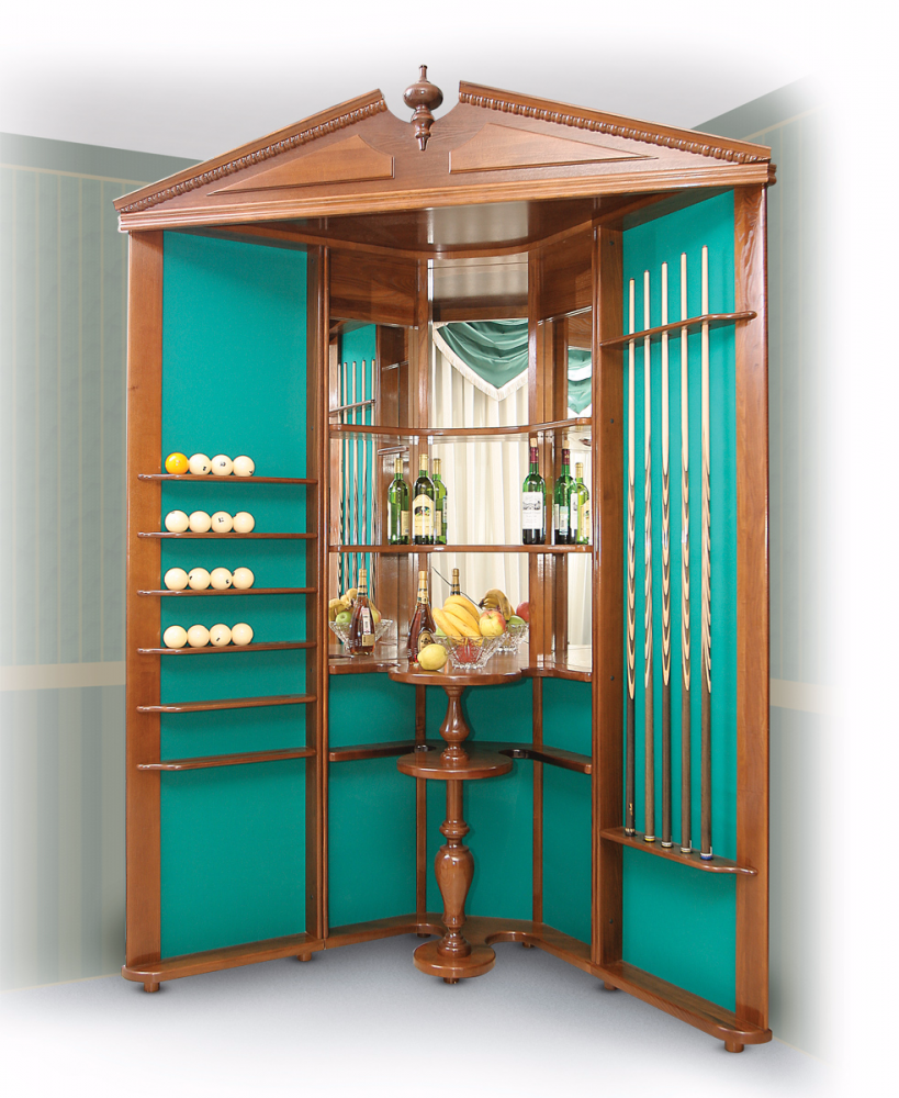 Модель напольная, предназначена для 6 киев, позволяет разместить треугольник, мелки, а также бильярдные шары. Материал массив ясеня / дуб. Есть возможность выбрать цвет из палитры Фабрики «Старт» Количество киев: 5 Материалы : ясень/дуб, лак Super DD Высота : 267 см Ширина стенок: 100 см