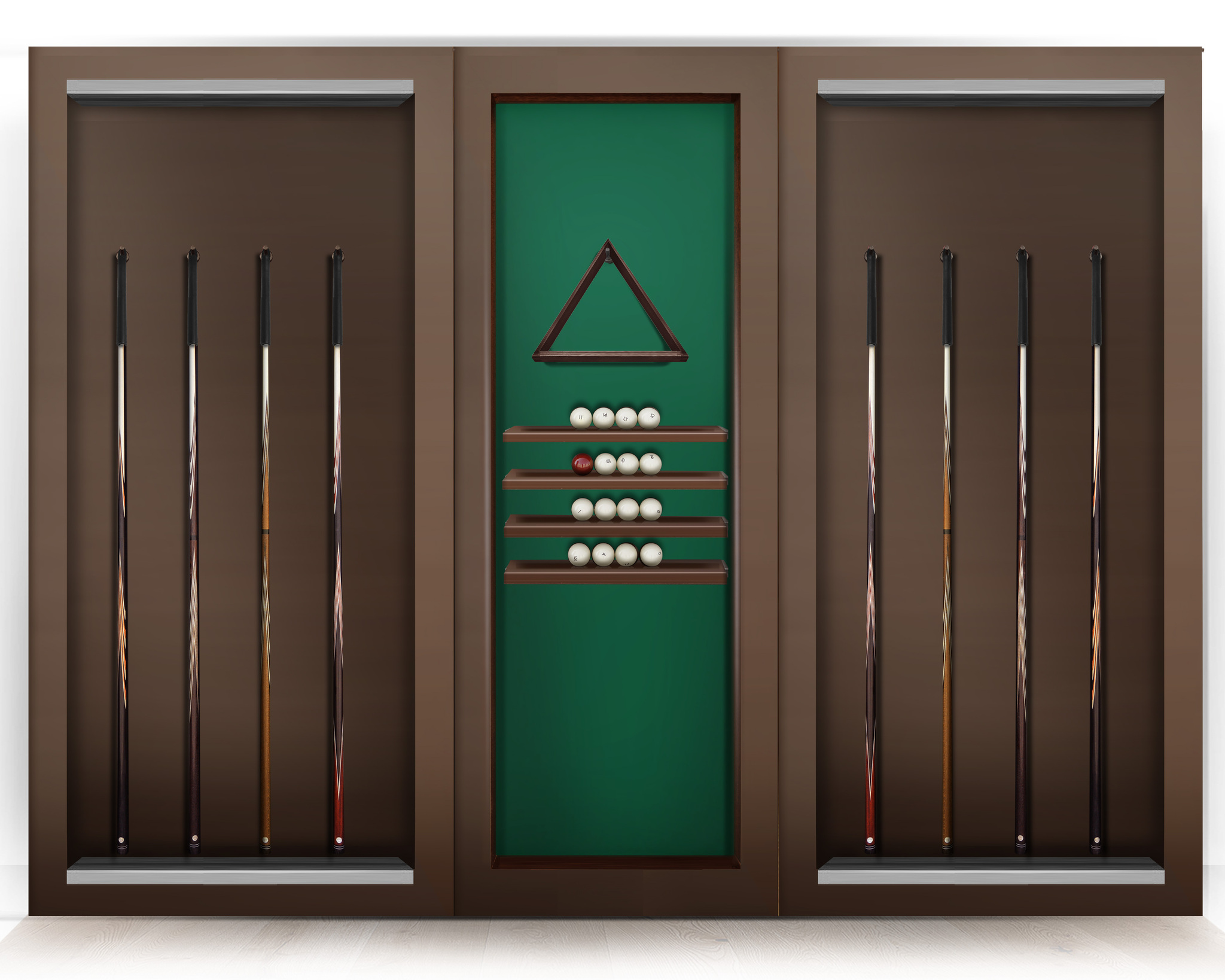 Киевница состоит из 3 частей и рассчитана для хранения 8 киев. Оснащена специальными полочками для бильярдных шаров и имеет удобный подвес, который обеспечивает легкий доступ к треугольнику для расстановки шаров. Данная киевница позволяет держать все необходимое оборудование в одном месте. Благородный дизайн киевницы выполнен в стилистике популярных коллекций Fusion, Techno, Victory, High-Style, Президент и Президент III. Каждая из этих коллекций отличается уникальными чертами, которые подчеркивают элегантность и функциональность изделия. Киевница станет не только практичным, но и эстетически привлекательным дополнением к вашему бильярдному залу.