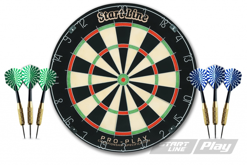 Комплект для игры в дартс Pro-Play профессионального уровня, соответствует турнирным требованиям. Материал мишени – сизалевое волокно. Разделители секторов из круглой проволоки, вращающееся кольцо нумерации. Комплект включает собранные дротики с латунным покрытием высокого качества 6 шт x 18 гр #40;3 дротика с синим хвостовым оперением и 3 с зеленым хвостовым оперением#41;, а также крепление для подвешивания к стене. Комплект Pro-Play идеален для клубов, развлекательных заведений, проведения спортивных турниров.