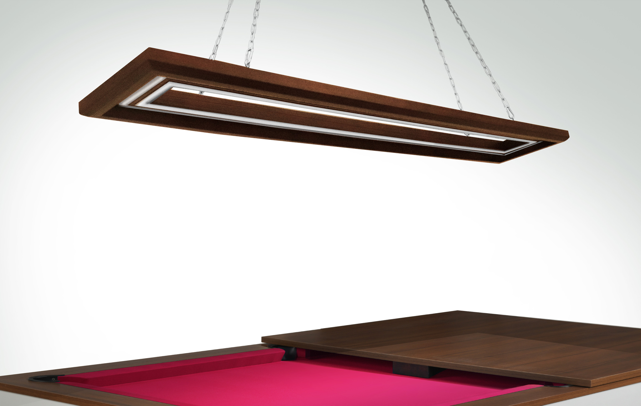 nbsp;nbsp;nbsp;nbsp;Светодиодные cветильники «Лофт» – это современный подход в освещении бильярда, энергосберегающее оборудование нового поколения. Световой поток состоит из двух полей, они разного уровня и имеют два разных угла наклона. Внутреннее поле освещает игровую зону стола, внешнее поле немного утоплено и распределяется под углом, чтобы не слепить игрока во время игры. В модели используется специальный рассеиватель, который обеспечивает одновременно мощное, равномерное и безбликовое освещение. Поток света без мерцания способствует хорошему обзору и зрительному восприятию при игре. «Лофт» представлены размерной линейкой для столов от 6 до 9 футов. Условные схематические обозначения: L — длина лампы / 1720 мм d — ширина лампы / 350 мм D — толщина лампы / 60 мм Н — мах высота крепления / 800 мм C — расстояние между осями / 720 мм Футуристичный дизайн светильника не нагружает помещение, сохраняя ощущение свободного пространства.