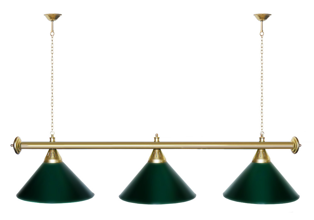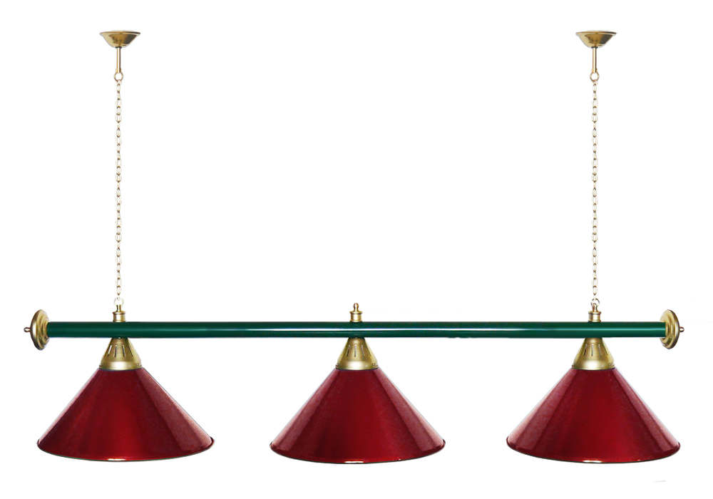 Светильники Startbilliards производства ФС «Горизонт» с 3-мя плафонами комплектуются к столам 7 и 8 футов. Укомплектованы цельной металлической штангой с полимерным покрытием. Штанга изготовлена из цельной трубы, что исключает искривление конструкции. Применение керамических патронов #40;Е27#41; увеличивает срок эксплуатации светильника. Металлические плафоны крепятся с помощью зажимных пластин. Длина подвесной цепи 100 см — оптимальное расстояние для расположения источника света над игровым полем стола. В комплект включены две потолочные чашки. Условные схематические обозначения: Н — общая высота светильника / 1420 мм L — общая длина светильника / 1420nbsp;nbsp;мм D — высота плафона / 300 мм d — диаметр плафона / 370 мм C — расстояние между осями / 500 мм Штанга и плафоны поставляются в отдельных упаковках.