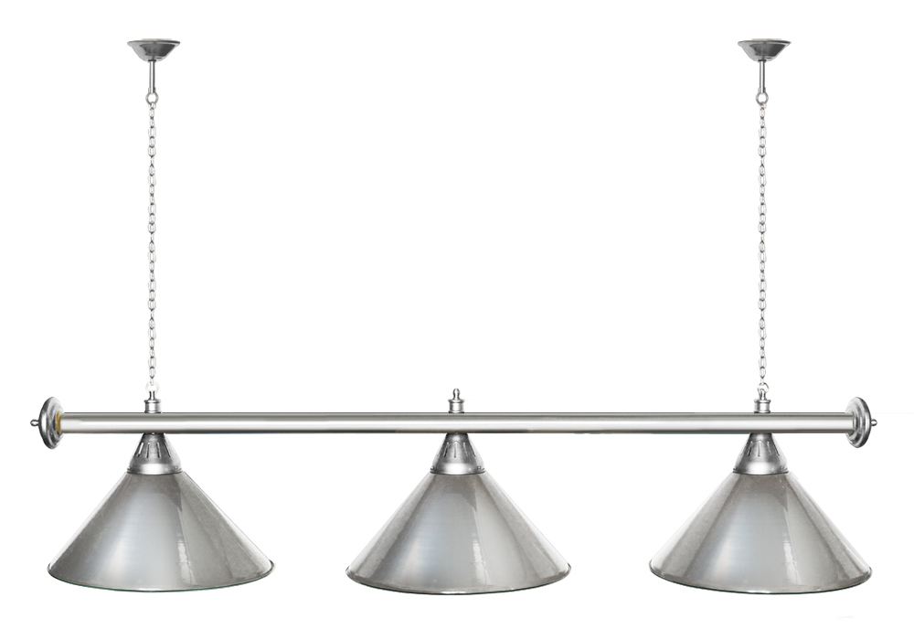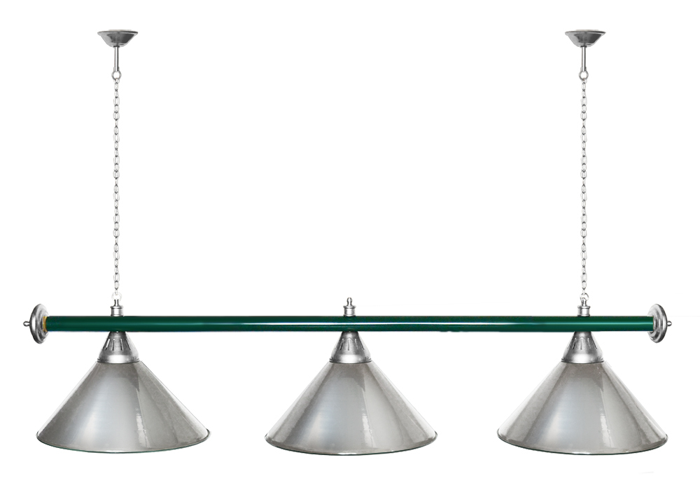Светильники Startbilliards производства ФС «Горизонт» с 3-мя плафонами комплектуются к столам 7 и 8 футов. Укомплектованы цельной металлической штангой с полимерным покрытием. Штанга изготовлена из цельной трубы, что исключает искривление конструкции. Применение керамических патронов #40;Е27#41; увеличивает срок эксплуатации светильника. Металлические плафоны крепятся с помощью зажимных пластин. Длина подвесной цепи 100 см — оптимальное расстояние для расположения источника света над игровым полем стола. В комплект включены две потолочные чашки. Условные схематические обозначения: Н — общая высота светильника / 1420 мм L — общая длина светильника / 1420nbsp;nbsp;мм D — высота плафона / 300 мм d — диаметр плафона / 370 мм C — расстояние между осями / 500 мм Штанга и плафоны поставляются в отдельных упаковках.