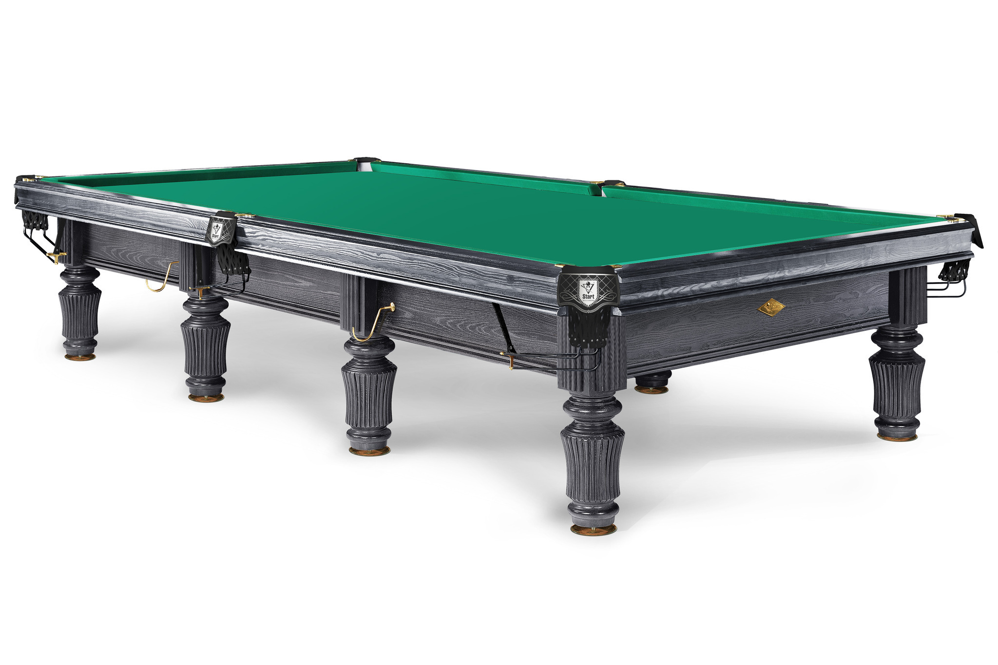Модель также усовершенствована усиленным крепежом, в изготовлении используется исключительно массив дерева и лузы из натуральной кожи . На столе такого уровня используются только латунные скобы на лузы и латунные чашки опор, лучшее сукно Manchester 70 wool Yellow green competition и амортизаторы Start Super Pro, рекомендованные ФБСР для проведения чемпионатов.