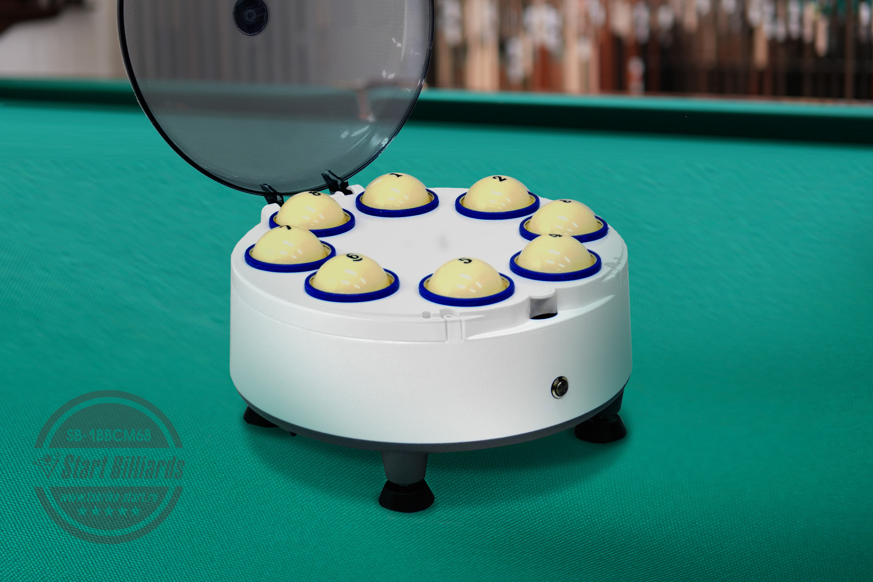 Верните бильярдным шарам кристальную чистоту и безупречный блеск с помощью профессиональной машины для чистки и полировки. Это устройство обеспечивает бережный и эффективный уход, продлевая жизнь инвентаря. Преимущества: —nbsp;nbsp;Быстрая и эффективная очистка: Очищает и полирует до 8 шаров #40;67-68 мм#41; одновременно. — Бережное воздействие: Конструкция машины предотвращает соударение шаров, защищая их от сколов и царапин. — Удаляет грязь, неглубокие царапины, частицы мела и возвращает шарам заводской глянец #40;при использовании специального полировочного состава#41;. —nbsp;nbsp;Прост в использовании: Интуитивно понятное управление одной кнопкой. — Комплект для ухода в подарок: В набор уже входит специальный спрей для очистки, щетка для чистки войлока и рожковый ключ для регулировки уровня. Строгий и лаконичный внешний вид не останется без внимания. Машинка впишется в любой интерьер. Прозрачная крышка позволяет визуально контролировать процесс очистки шаров. Как это работает? Машина последовательно вращает шары в разных направлениях #40;1 минута в каждую сторону с перерывом в 20 секунд#41;, что в сочетании с чистящим средством обеспечивает равномерную и глубокую очистку всей поверхности. Простая инструкция по использованию: 1. Загрузка: Откройте крышку устройства и поместите в отверстия для загрузки #40;диаметр 70-71 мм#41; до 8 бильярдных шаров. 2. Нанесение средства: Равномерно нанесите небольшое количество чистящего спрея #40;вход в комплектацию#41; на шары. 3. Запуск: Закройте крышку. Нажмите кнопку включения на корпусе. Индикатор загорится красным светом, и процесс начнется. Автоматический цикл включает вращение #40;1400 об/мин#41; в прямом и обратном направлении с паузами для максимального эффекта. 4. Завершение: Дождитесь полной автоматической остановки машины. Индикатор погаснет. 5. Повторная процедура: Повторяйте процедуру до тех пор, пока загрязнения не будут устранены. 6. Извлечение: Достаньте чистые и сияющие шары. Рекомендация: Для обеспечения оптимальной работы устройства и предотвращения перегрева делайте перерыв 2-3 минуты между циклами чистки. В случае сильных загрязнений рекомендуем воспользоваться средством для реставрации бильярдных шаров TAO-MI. Оно содержит абразивные частицы и подходит для глубокой очистки оборудования. Идеальное решение для домашних бильярдных комнат, клубов, баров и всех, кто ценит безупречное качество игры и ухаживает за своим инвентарем. Технические характеристики: Питание: 220 V Потребляемая мощность: 180 W Скорость вращения: 1400 об/мин