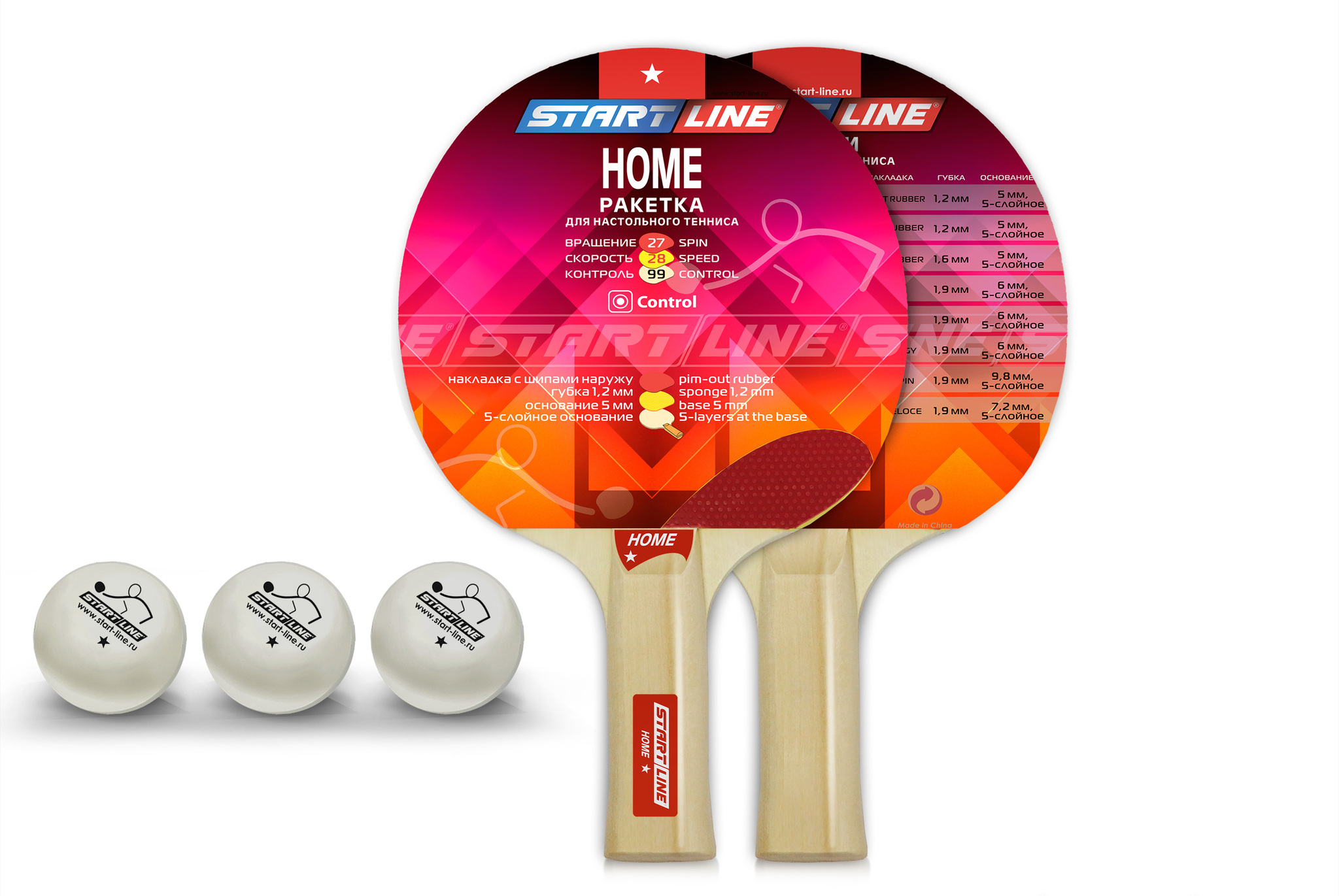 Набор START LINE: 2 Ракетки Home 1 звезда, 3 Мяча, Сетка с креплением, упаковка блистер