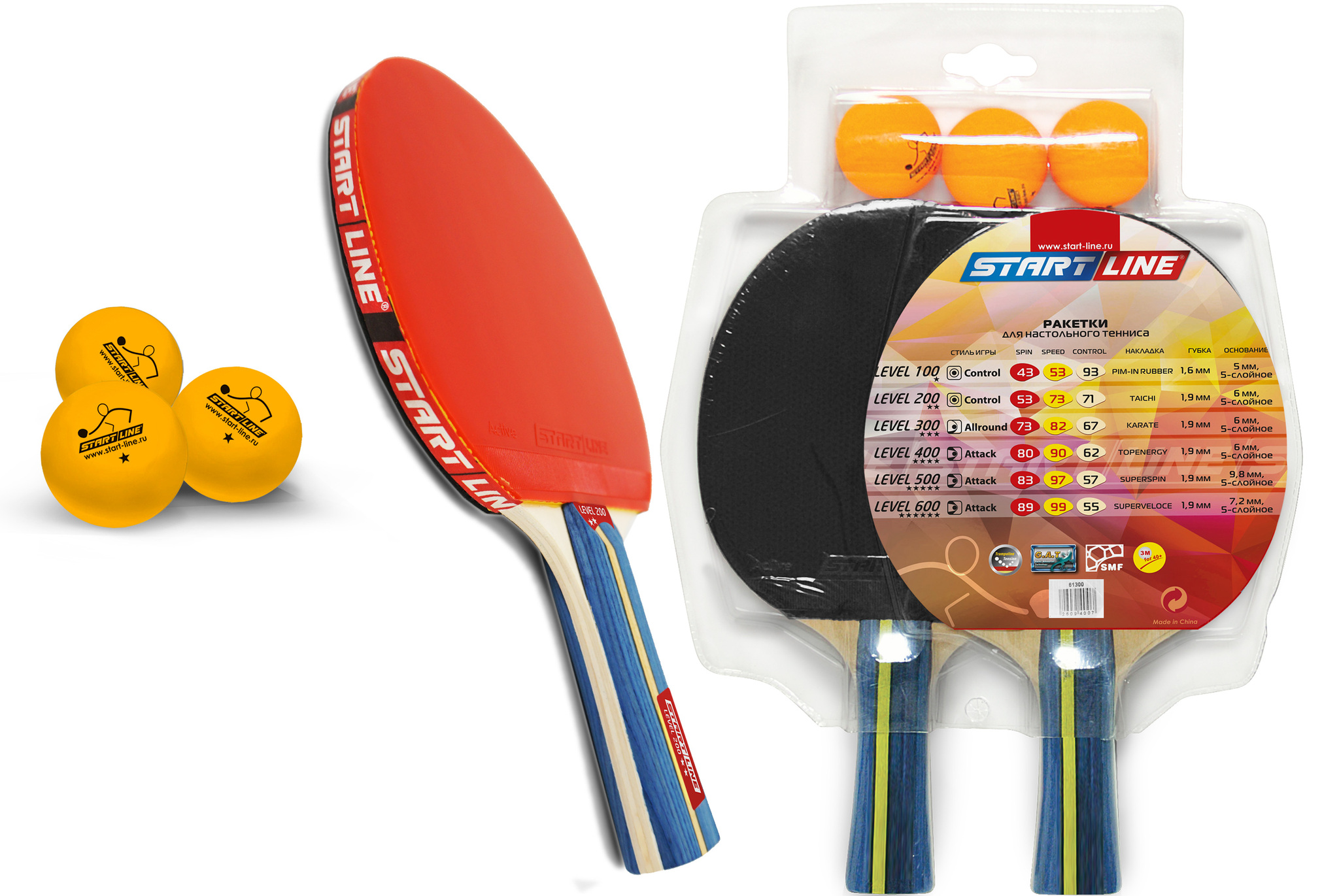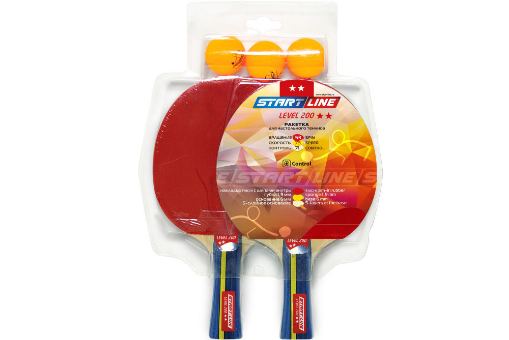 Набор START LINE: 2 Ракетки Level 200, 3 Мяча Club Select, упаковано в блистер