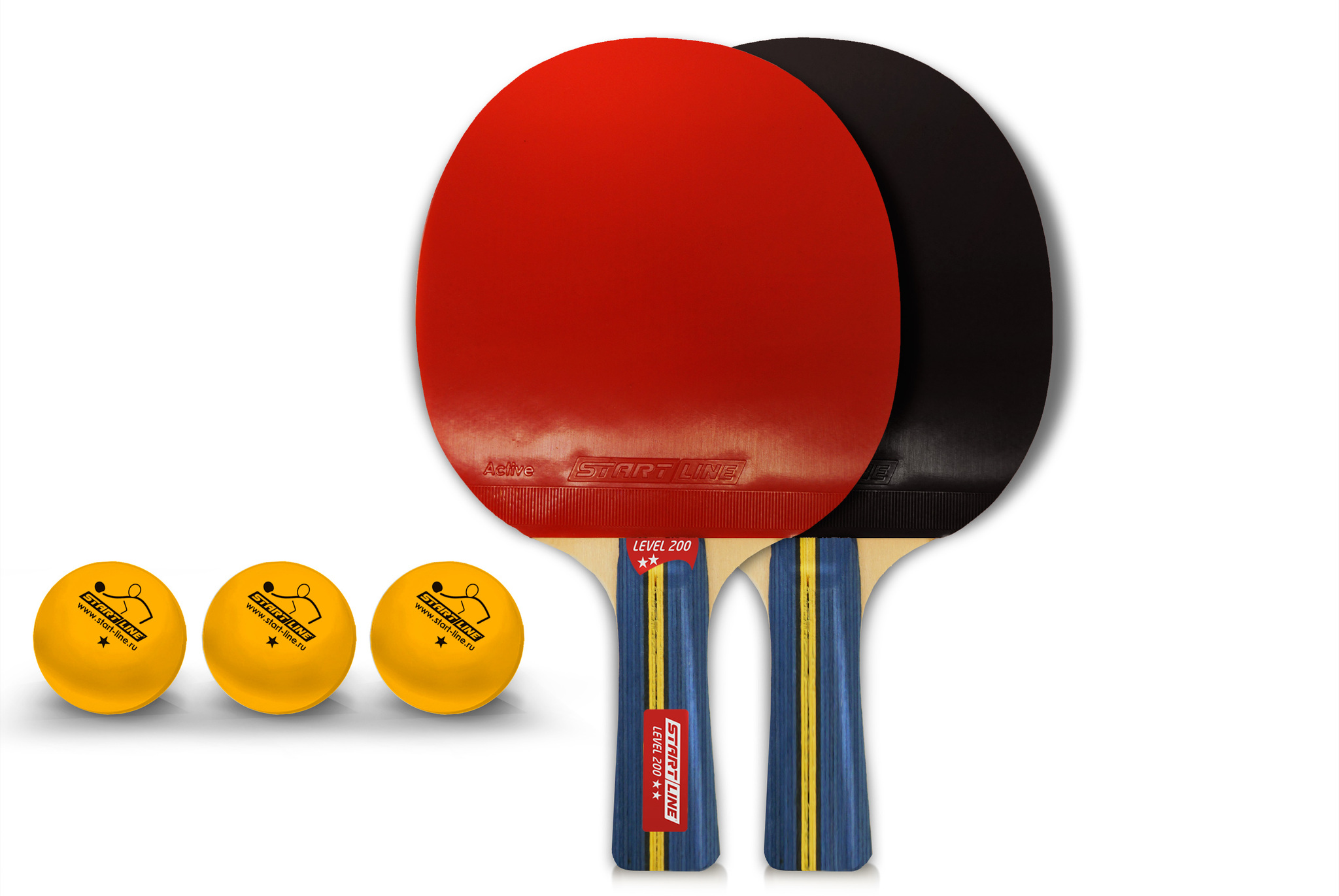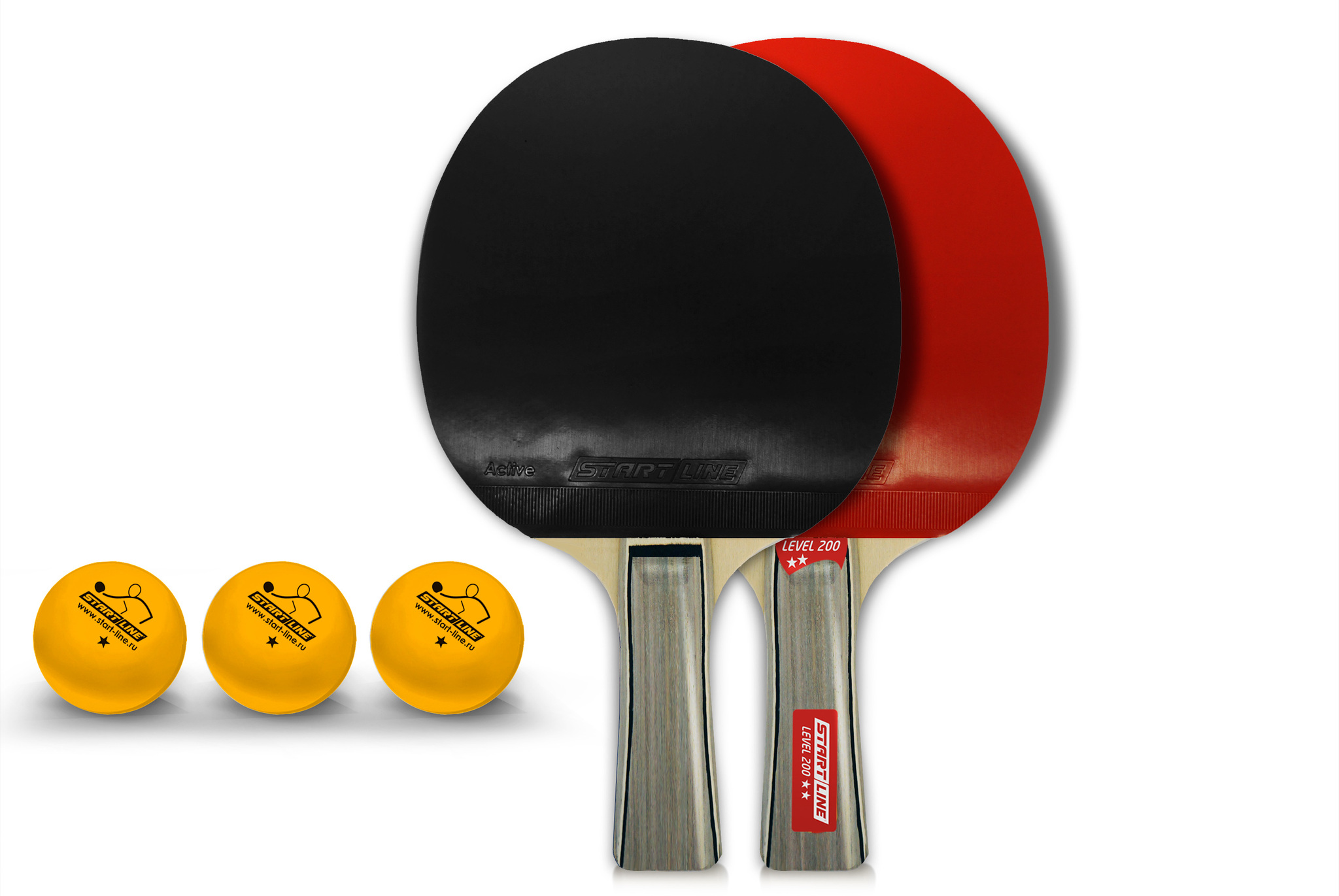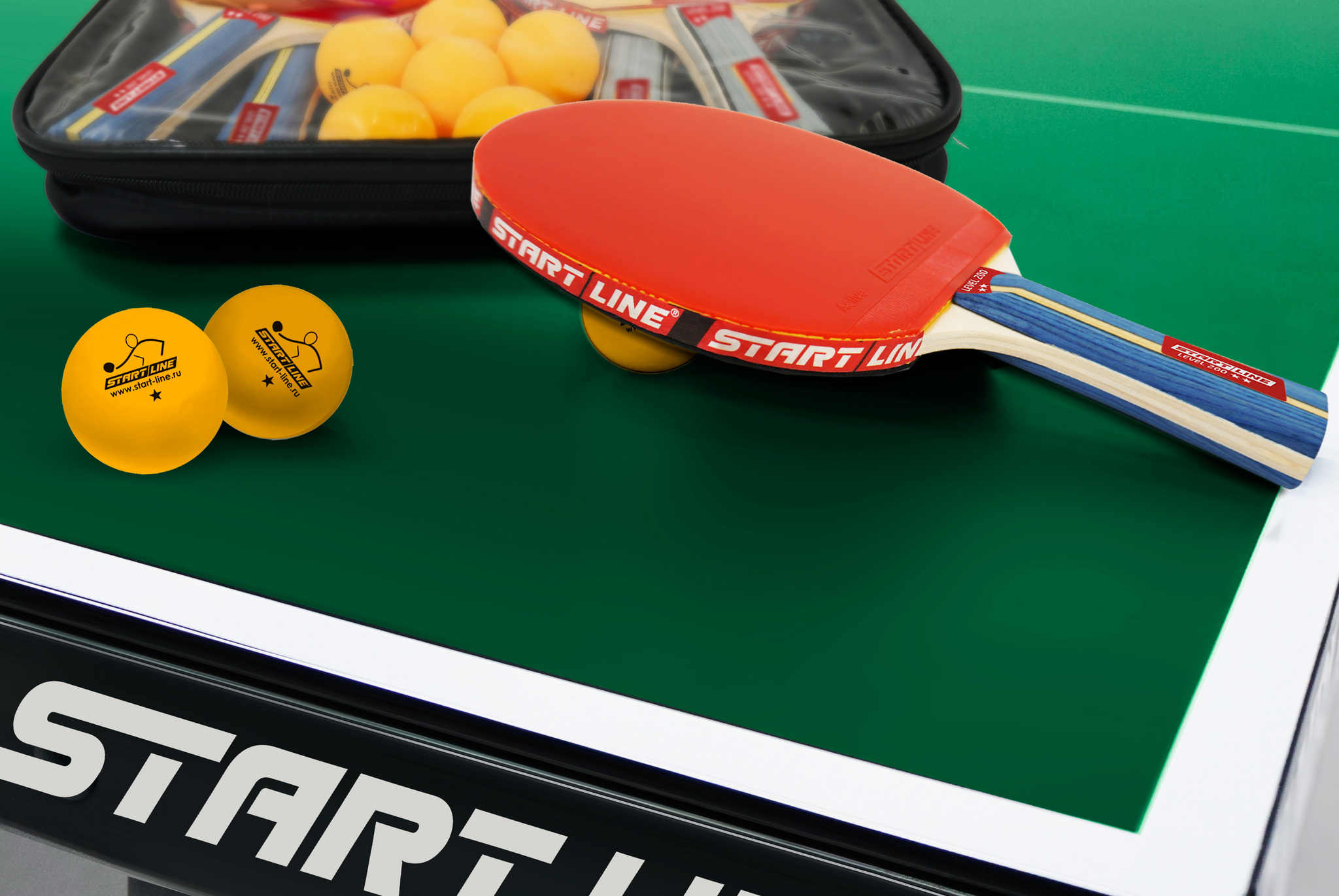 Набор START LINE: 4 Ракетки Level 200, 6 Мячей Club Select, упаковано в сумку на молнии с ручкой.
