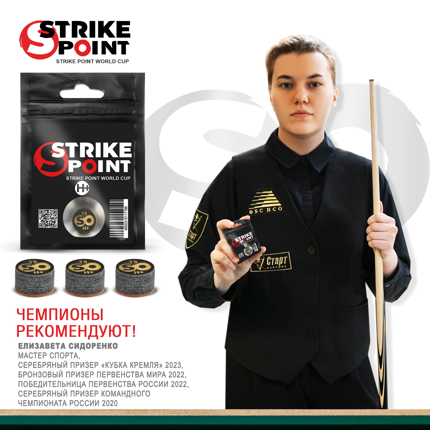 Strike Point. Для тех, кто диктует свои условия Наклейка для кия Strike Point – точка абсолютного превосходства. Этоnbsp;nbsp;результат многолетних исследований и неутолимого стремления к совершенству. Разработанная для профессионалов и взыскательных любителей, наклейка Strike Point – неотъемлемая часть высокоточного инструментария, обеспечивающего беспрецедентный контроль над ударом. 9-ти слойная наклейка с жесткостью H#43; #40;по шкале Шора D 87-90 ед.#41; передает энергию удара эффективно и предсказуемо, что критически важно для максимального контроля над вращением. Strike Point - идеальное решение для профессионального игрока с атакующим стилем игры. Высокая жесткость наклейки создает идеальные условия для винтовых ударов без риска проскальзывания #40;кикса#41;. Strike Point – это не просто наклейка, это высокоточный инструмент, проецирующий ваше мастерство без искажений. При производстве наклеек Strike Point используется уникальная технология VACUUM PRESS, прессование, при котором специальный состав впитывается в кожу и придает готовому изделию безупречное качество. Производство наклеек Strike Point происходит в условиях контролируемой среды, исключающей попадание пыли и влаги. _________________________________ Современная технология производства VACUUM PRESS: – Технологияnbsp;nbsp;VACUUM PRESS позволяет сохранить максимальную жесткость наклейки для игр, при этом обеспечивает сцепление с шаром на высочайшем уровне – Каждая наклейка Strike Point – это результат точной послойной сборки материалов, которые обладают беспрецедентной памятью формы – наклейка мгновенно восстанавливается после удара, сохраняя идеальную сферическую форму. – Технологияnbsp;nbsp;VACUUM PRESS гарантирует идеальную геометрию контактной поверхности. – Каждая наклейка Strike Point выдерживает сильнейшие удары интенсивной игры, сохраняя свои игровые характеристики надолго и неизменно на высоте. – Технологияnbsp;nbsp;VACUUM PRESS обеспечивает мощное, предсказуемое и стабильное сцепление, без залипания или проскальзывания. – Каждая партия наклеек Strike Point проходит контрольную серию ударов, имитирующих условия реальной игры, для финального подтверждения стабильности характеристик.