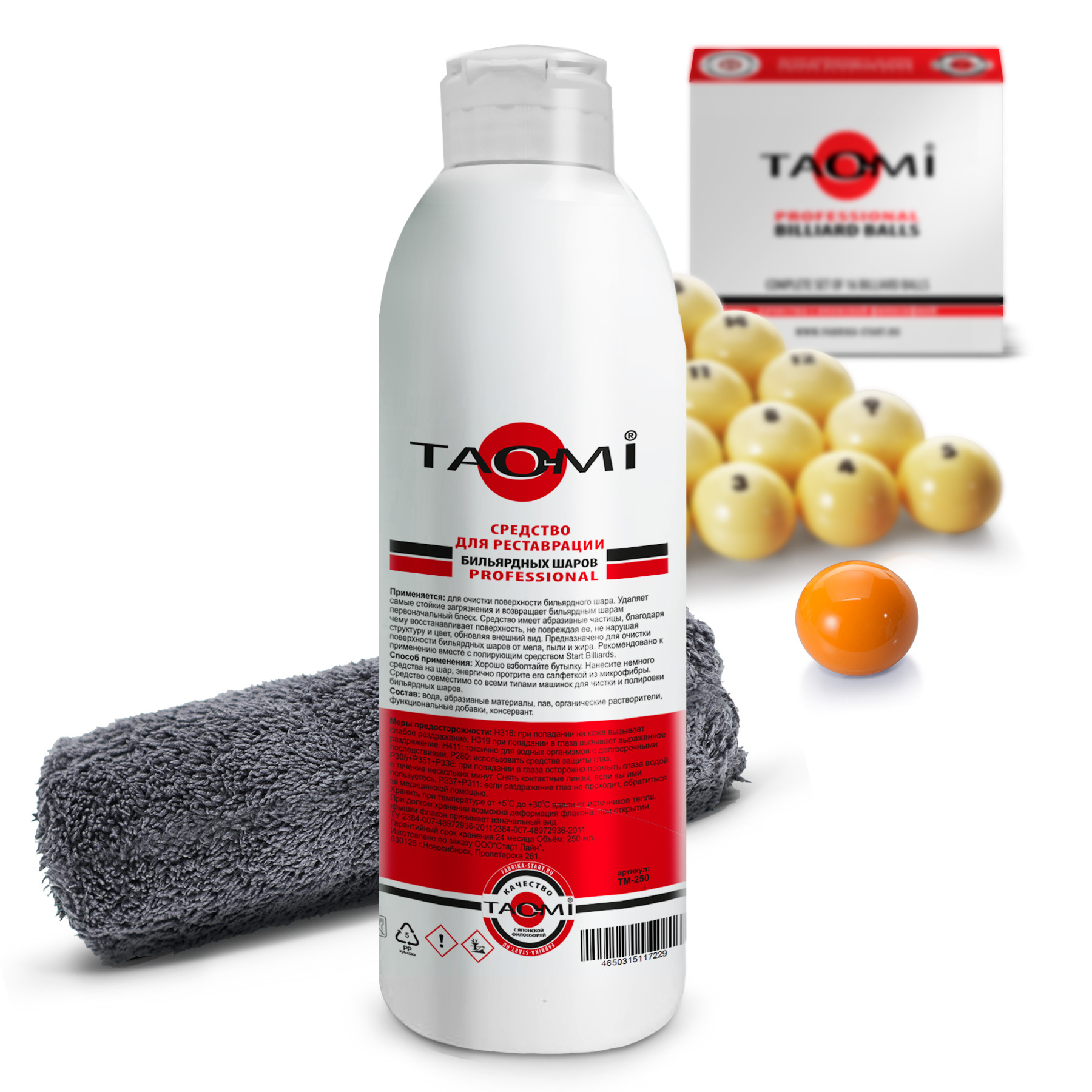 Верните бильярдным шарам идеальный блеск и чистоту! Профессиональное средство TAO-MI предназначено для комплексного ухода, очистки и реставрации бильярдных шаров. Оно эффективно справляется даже с сильными загрязнениями. Одно средство решает сразу четыре задачи: очистка, реставрация, полировка и дезинфекция. Средство для реставрации бильярдных шаров TAO-MI удаляет глубоко въевшиеся частицы мела, пыли, грязи и жира с поверхности шаров, которые не только портят внешний вид, но и влияют на точность удара. Чистые и гладкие шары меньше подвержены случайным отклонениям, что делает игру более предсказуемой и точной. Средство TAO-MI совместимо со всеми типами машинок для очистки и полировки бильярдных шаров. Больше не нужна дорогостоящая профессиональная полировка. Вы сами можете восстановить шары до первозданного вида:nbsp;nbsp;просто нанесите средство и отполируйте салфеткой, которая идея в комплект. Активная формула средства мягко полирует микроцарапины, возвращая шару идеальную гладкость и геометрическую точность. После обработки средством TAO-MI шары снова выглядят как новые. Для достижения наибольшего эффекта рекомендовано использовать в паре с полирующим средством Start Billiards. Средство для реставрации бильярдных шаров TAO-MI в комплекте с мягкой махровой салфеткой поставляются в единой упаковке. Чистые шары — это не только эстетика, но и гарантия точной и качественной игры. TAO-MI — идеальный выбор для ценителей бильярда и владельцев клубов, заботящихся об игровом инвентаре! Подарите бильярдным шарам вторую жизнь и наслаждайтесь безупречной игрой с TAO-MI!