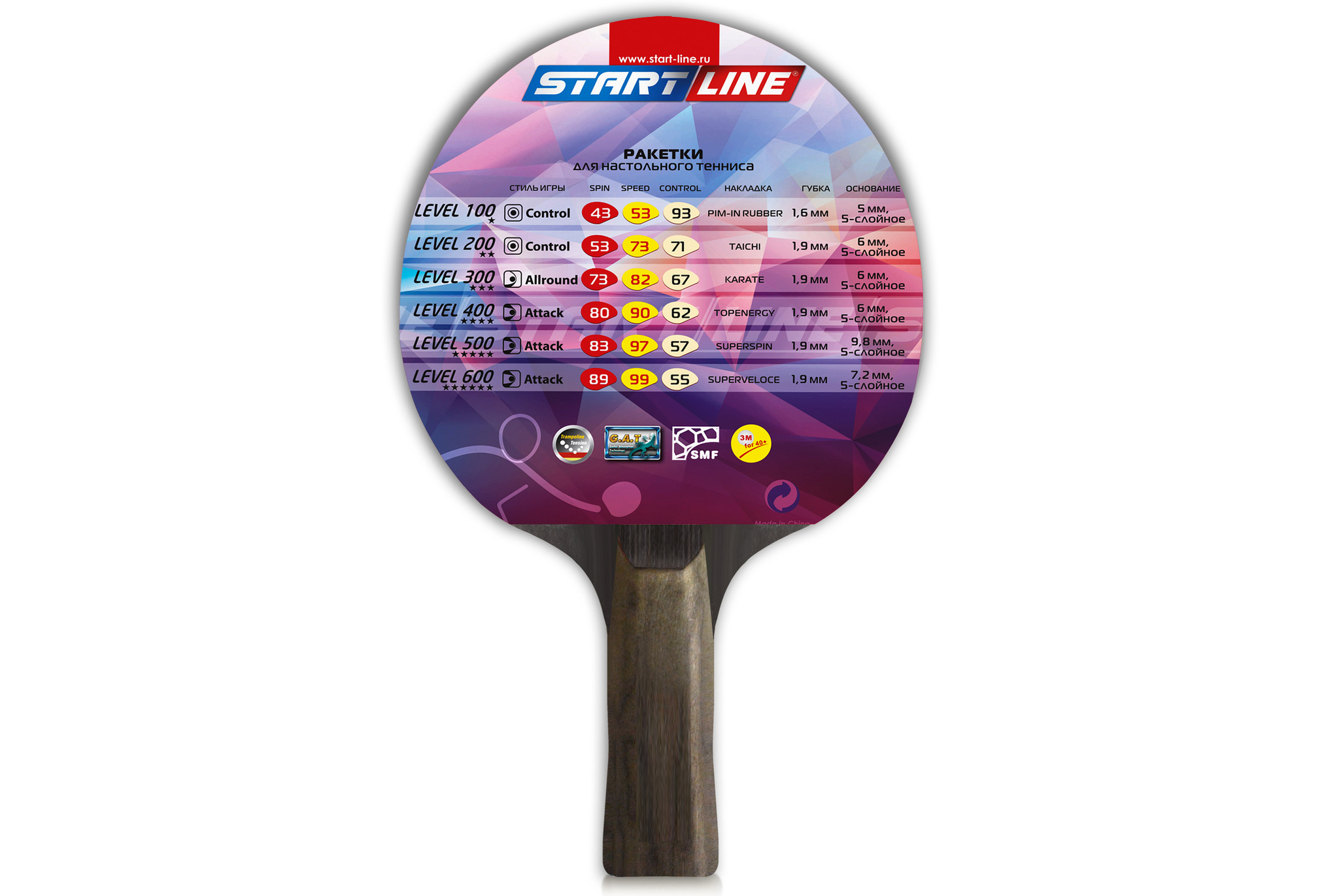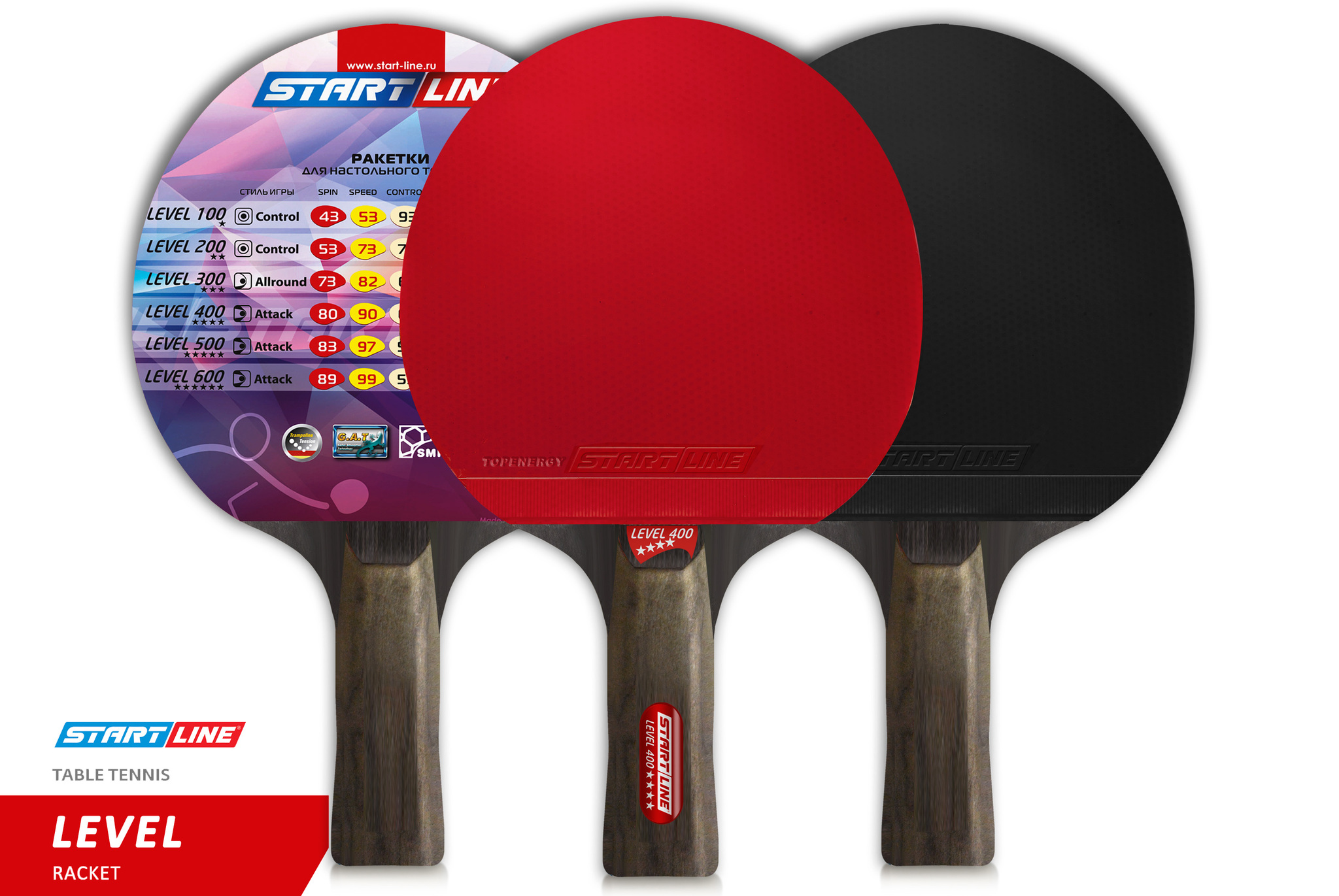 Ракетка для настольного тенниса Level 400 соответствует высокому современному стандарту качества, имеет обновленный дизайн, а также улучшенные технологические и игровые характеристики. В производстве ракеток Level 400 применены новейшие технологии: - Технология натяжения - Trampoline Tension Technology Уникальная технология, которая делает резину и губку с высоким натяжением. При игре резина хорошо поглощает атакующие удары мячей. Данный вид резины содержит натуральные органические вещества. - Технология поглощения - Gecko Adsorption Technology Эту технологию применяют при производстве резиновой поверхности ракетки. Так, на самой поверхности резины образуется множество выходных отверстие #40;как губка#41;, которые позволяют задержать мячи на резине. Благодаря этой технологии можно свободно контролировать мяч, его скорость и вращение. - Технология симметрии - Symmetrical Microcellular Foam Technology. Благодаряnbsp;nbsp;применению симметричного мелкопористого пенопласта, ракетка отличается эластичностью, легкостью и хорошим энергопоглощением.